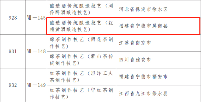 喜讯!丨屏南红粬黄酒酿造技艺入选国家级非物质文化遗产代表性项目名录