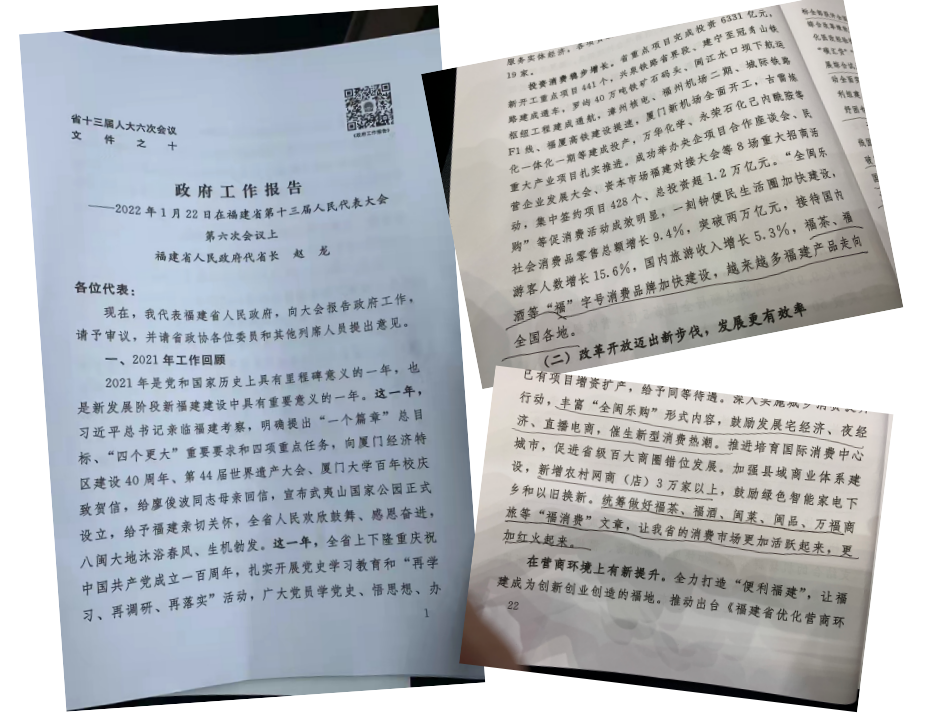 福建省第十三届人大六次会议《政府工作报告》部分内容截图。